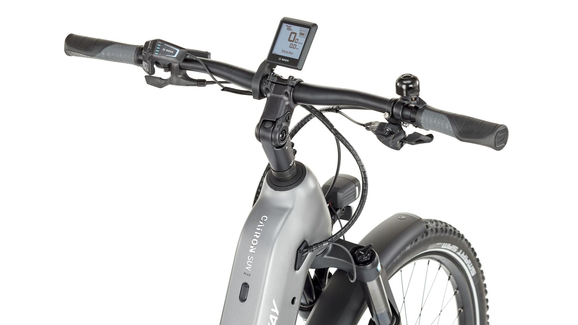 Beim Cairon SUV FS handelt es sich um ein E-SUV Bike mit einem Tiefeinstieg, der ein bequemeres Auf- und Absteigen ermöglicht. Ausgestattet ist es mit einem Bosch Mittelmotor, einer 625Wh Batterie und einer 12-Gang Deore Kettenschaltung von Shimano. Zusätzlich sorgen hydraulische Scheibenbremsen für eine zuverlässige Bremsleistung. Ein Gabelfederweg mit 120mm vorne und ein Rahmenfederweg von 100mm hinten, ermöglichen eine angenehme Fahrt auf unterschiedlichstem Terrain. Für erhöhte Sicherheit sorgt ein bereits installierter Scheinwerfer sowie ein Rücklicht und Schutzbleche.